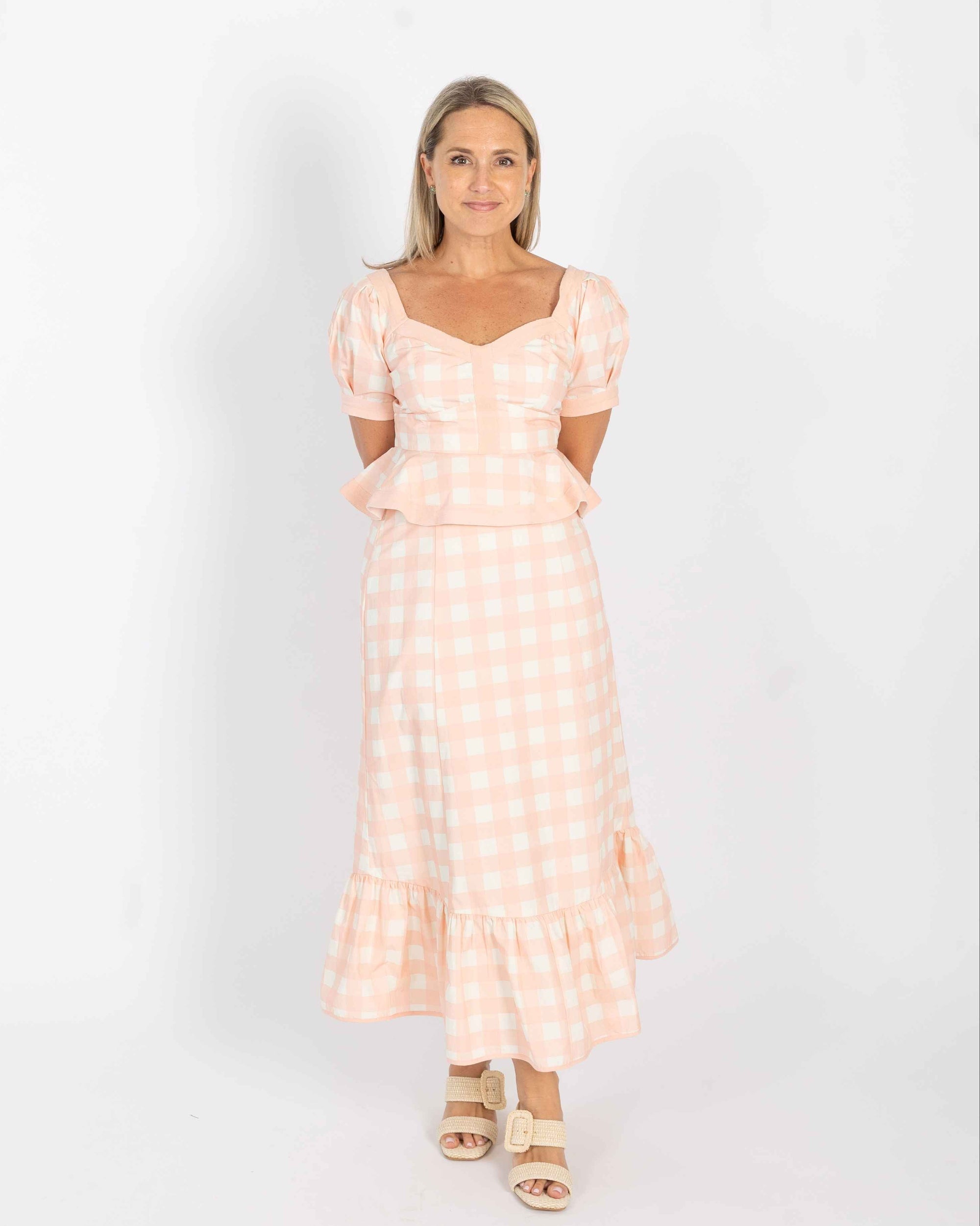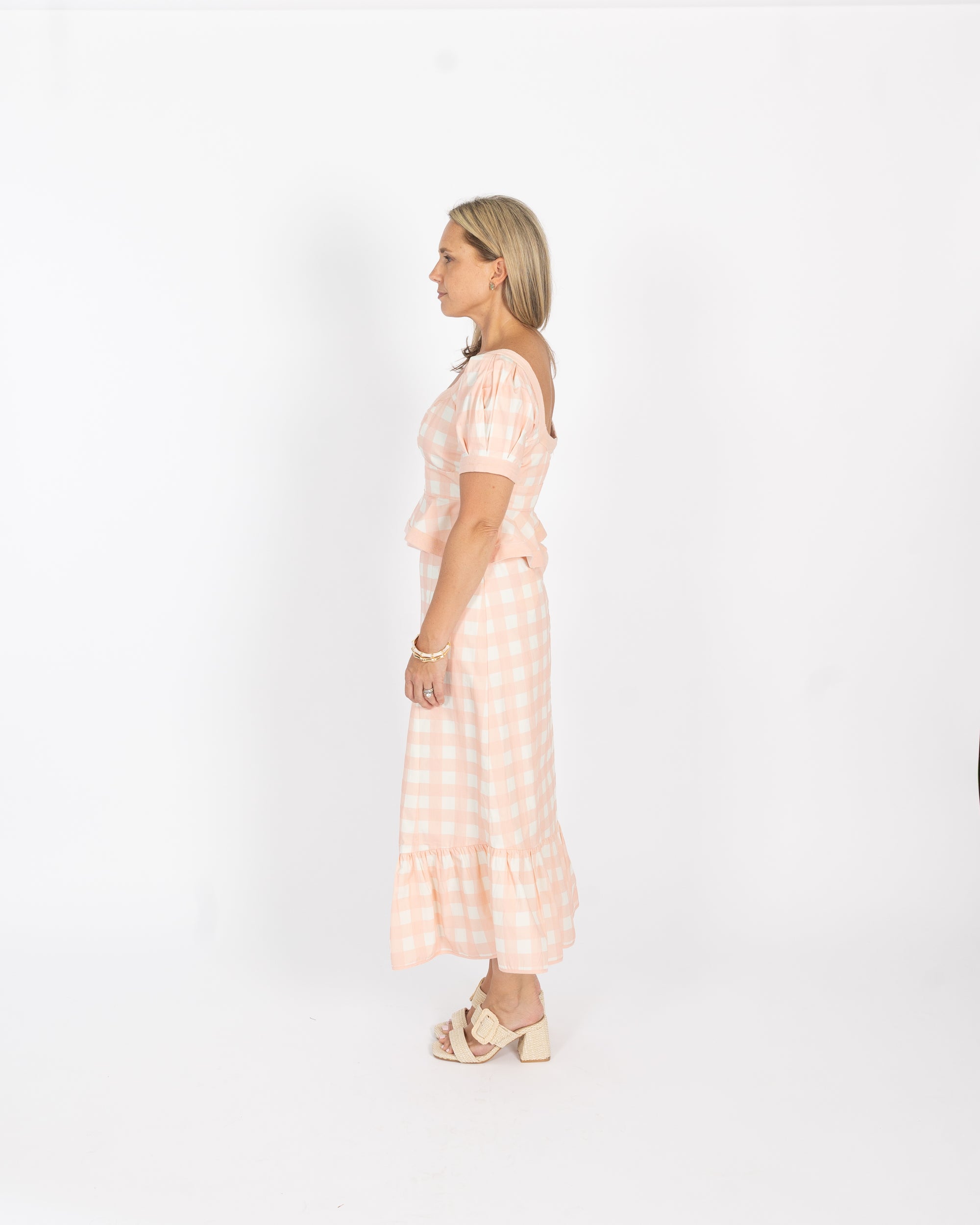 Addie Top - Pink Buffalo Check (Puff Sleeve Version)
